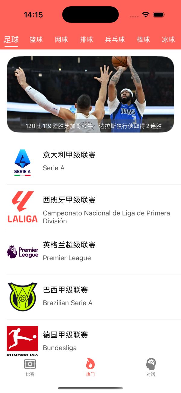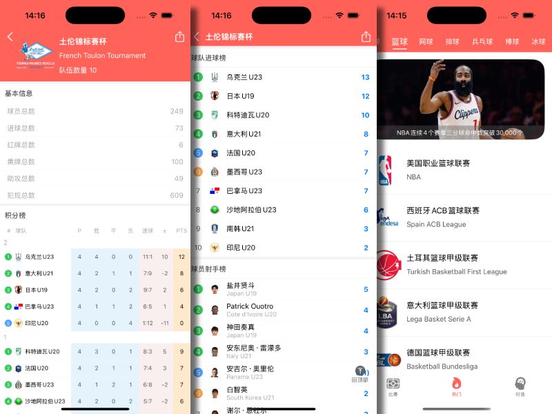 以及 赛事选择的界面,方便用户选择自己感兴趣的比赛。